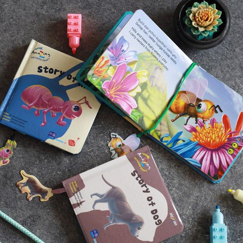 WOW, Amazing Rainbow Books hadir sebagai solusi tepat untuk membantu anak-anak belajar dan berkembang dengan cara yang menyenangkan dan penuh makna. Buku ini menggabungkan cerita-cerita inspiratif tentang binatang dalam Al-Quran dan Hadis dengan permainan edukatif yang menarik, sehingga anak-anak dapat mengasah kecerdasan interpersonal, intrapersonal, dan linguistik mereka. Buku ini dikemas dengan berbagai keistimewaan, di antaranya: